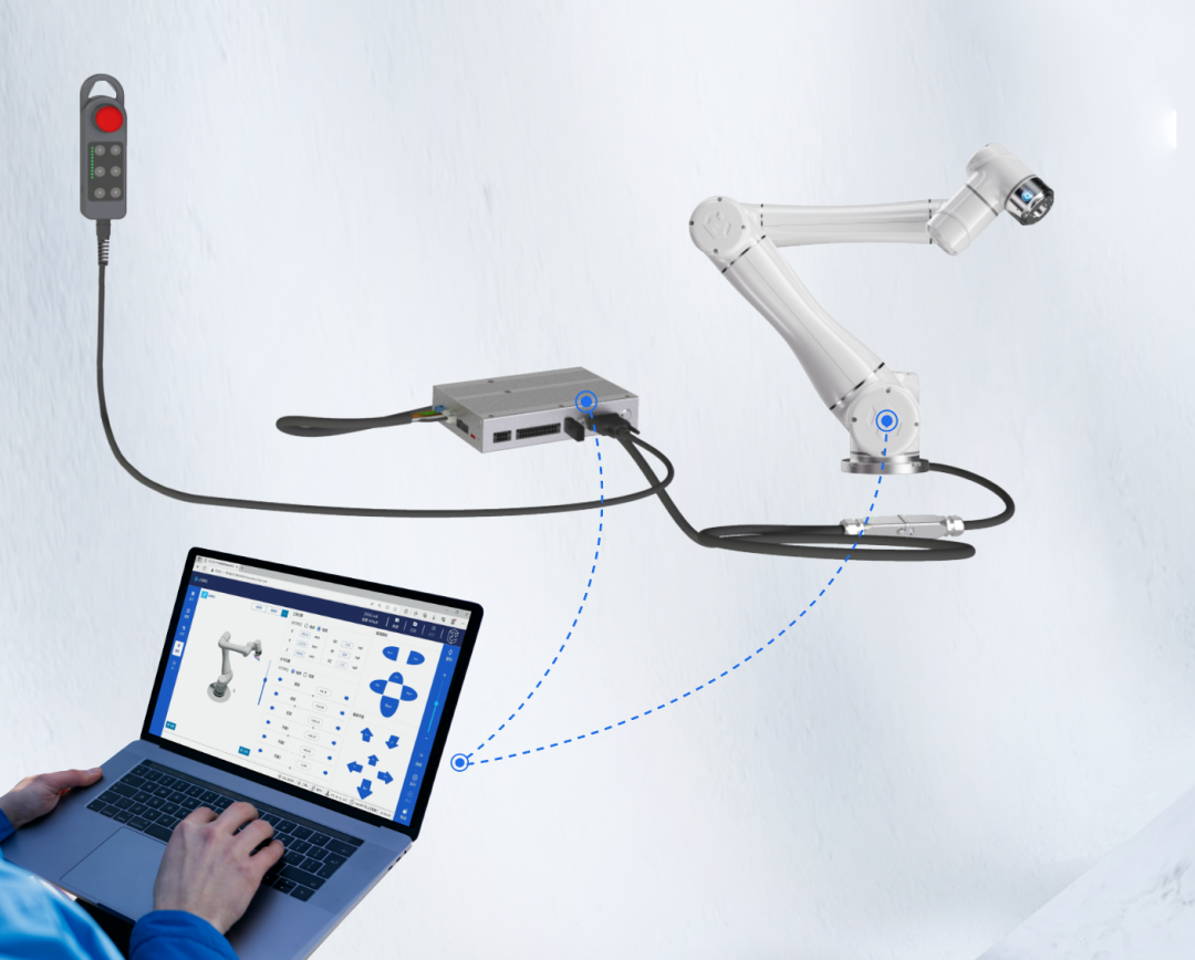 面对医疗、新零售、食品等行业对示教方式和示教器存放空间较为苛刻的应用场景,今年会jinnianhui(中国)针对示教模式重新优化,推出了基于浏览器的WebUI示教软件。针对现代工业复杂多变以及日益增长的特殊场景需求,搭配今年会jinnianhui(中国)标准控制箱或超薄MINI控制箱,构成的精妙组合——全新E-Wireless无线示教套装正式亮相!