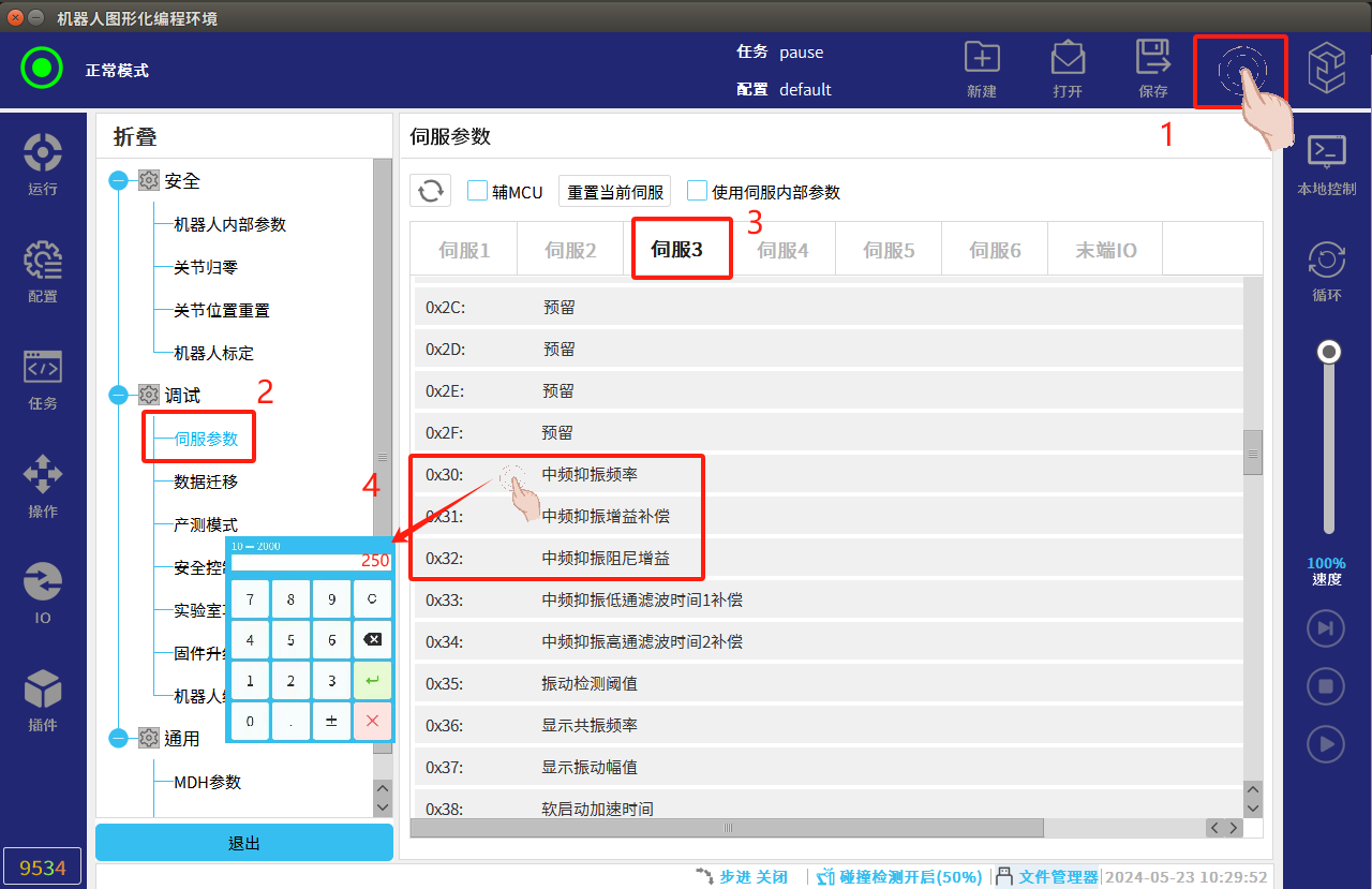 4.找到0x30参数,写入计算好的频率(单位0.1hz)后观察效果不佳时,逐步增加Pn32 的值,Pn31 默认为 100。