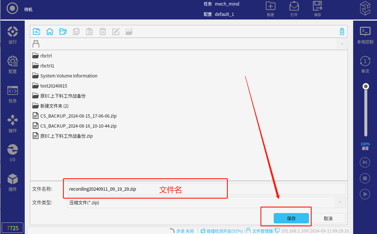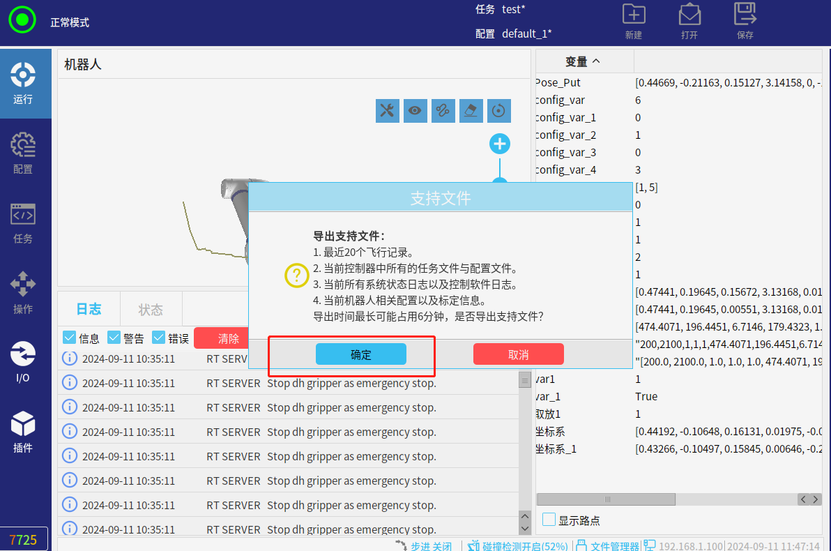 发送后机器人应该会按照脚本指令运动,无论是否运动,我们都可以导出支持文件查看: