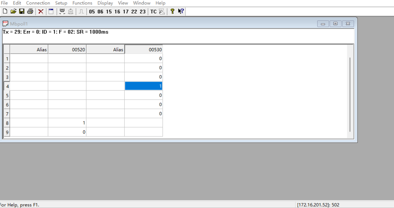 助手端将400寄存器设置为123,401寄存器设置为23,402寄存器设置为-345,403寄存器设置为-876,404寄存器设置为2345