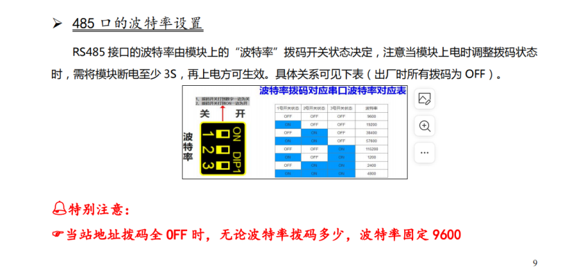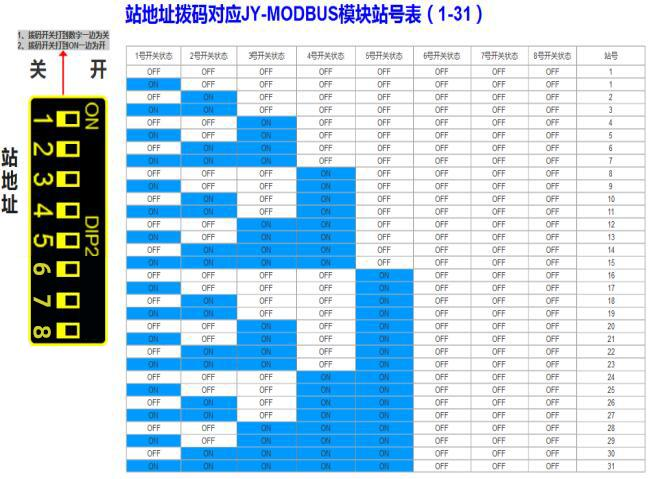 波特率需要拨成“115200“,站地址需要根据需求二进制换算站号(单模块拨码”1“ON,双模块(模块1拨码”1“ON,模块2拨码”2“ON))