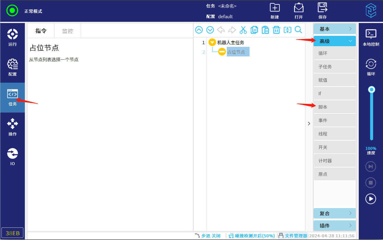 2.4 点击任务,在高级目录下点击脚本