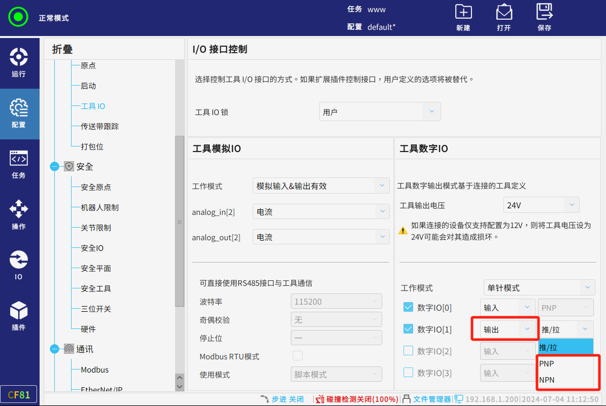 CS-v2.11版本添加了CS 急停时移除工具IO输出电源以及输出IO信号的更新。