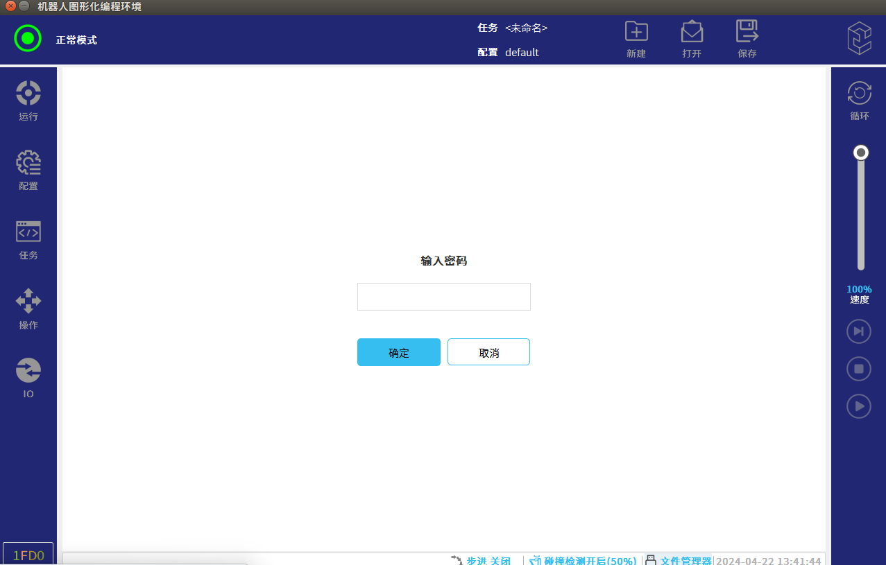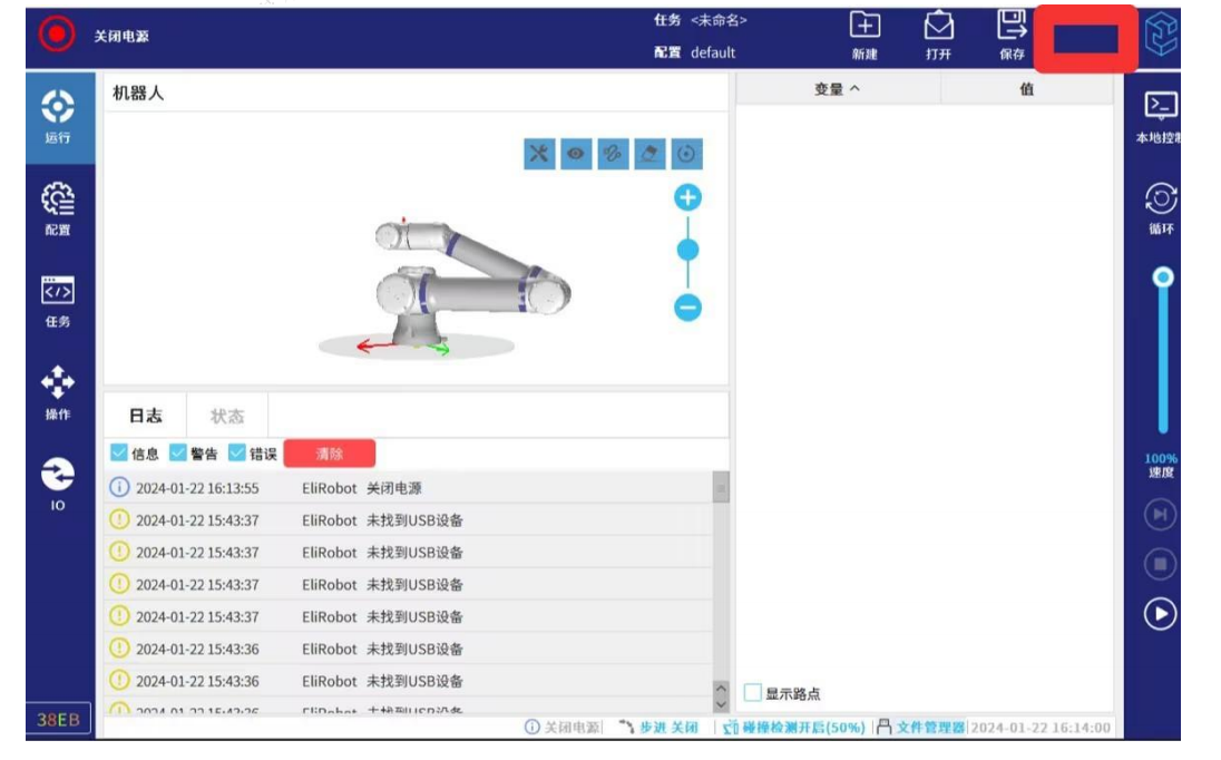 第二步:按照图-13红框所示点击右上角深蓝色空白区域(连续快速点击5-8次),输入 密码"elibot"进入专家模式。